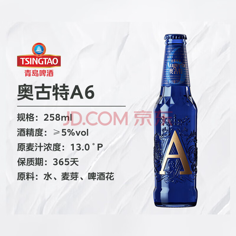 青岛啤酒(TSINGTAO) 奥古特A6 全麦精酿啤酒13度 258ml/瓶*24 畅饮装 夏天爽口清凉